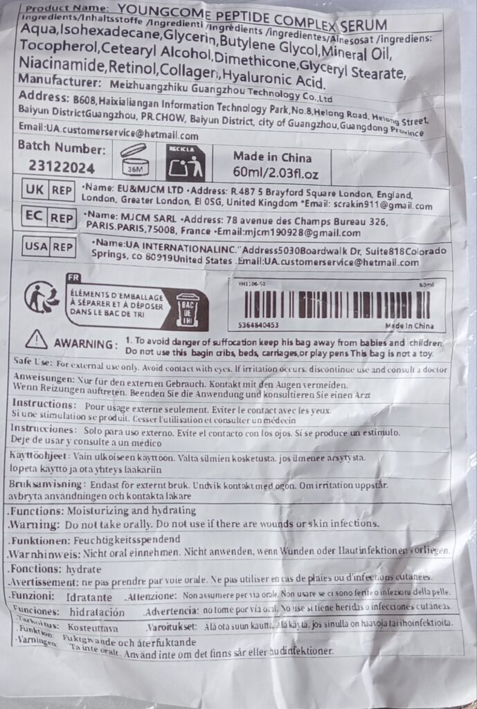 Analiza serum do twarzy YOUNGCOME PEPTIDE COMPLEX.